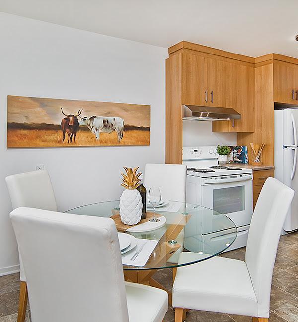 Appartements mensuels entièrement meublés 3 1 2 , Câble, internet wifi, service de nettoyage et meubles et électroménagers/ustensiles de cuisine inclus À partir de 850$