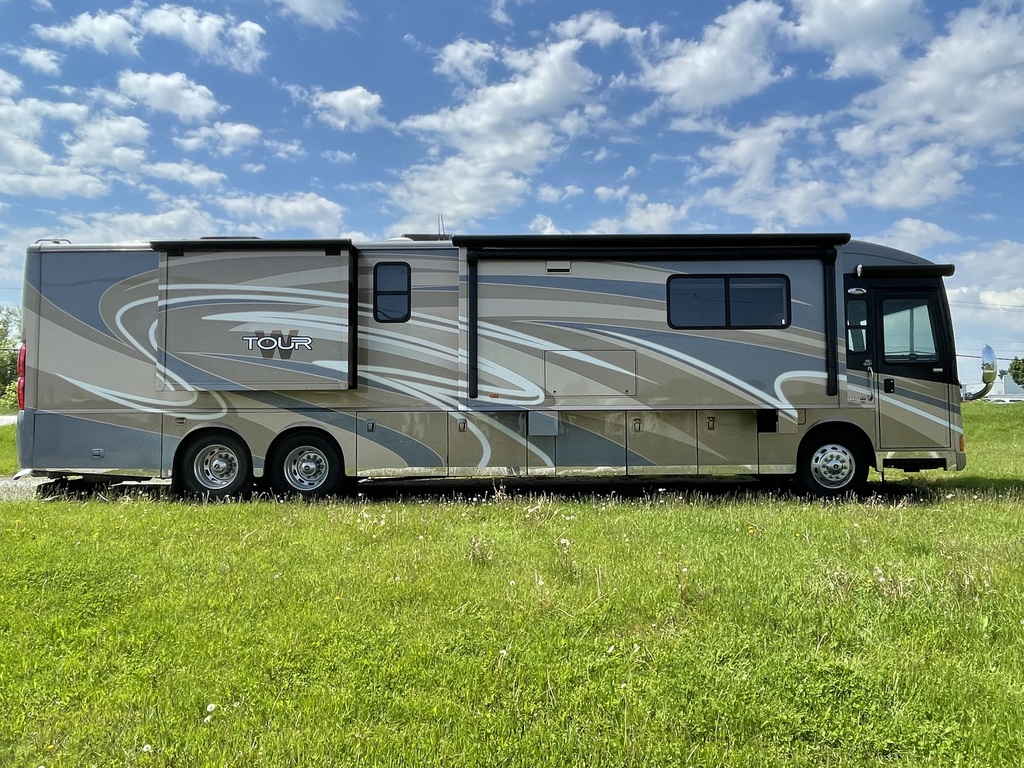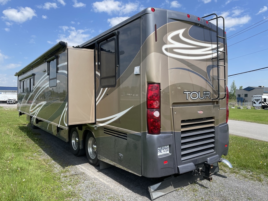 Options : Suspension pneumatique, Génératrice au diesel, Réservoir de propane, Climatiseur conduit central, Ventilateur au plafond, Régulateur de vitesse, Volant inclinable, Caméra Marche arrière, Cric hydraulique, Échelle, Attache-remorque, Douche, Toilette, Laveuse, Sécheuse, Lit arrière, Prise électrique, Téléviseur, Antenne pour téléviseur, Micro-onde, Cuisinière, Auvent, Chauffe-eauSuperbe motorisé classe A 2011 Winnebago Tour 42QD avec 450 HP, 3 extensions, 2 toilettes, chauffage Aqua Hot et encore plus... We also speak english Voir www.superieurvr.com pour plus de photos Un véhicule récréatif demeure la meilleure manière de voyager en toute sécurité en protégeant votre santé et celle des personnes qui vous sont chères! Financement disponible et échange accepté Appelez nous sans frais au 1-888-756-0481 Supérieur VR cest 15 ans d'expérience à votre service. Des techniciens formés, accrédités et expérimentés. Cest 10 baies de service: mécanique, habitation, esthétique, atelier de carrosserie complet avec chambre à peinture grand format (50 pieds). Centre de service autorisé pour les génératrices Onan Cummins, systèmes de chauffage Aqua Hot, Hydro hot, precision temps et Oasis. Nous vendons des motorisés usagés certifiés. Nous avons aussi des motorisés neufs de marque Coachmen Sportscoach, Encore, Mirada et Pursuit. Nous sommes aussi détaillant du manufacturier Gulfstream pour les marques Conquest et BT CRUISER. Sans oublier le manufacturier Holiday Rambler pour les marques Admiral, Eclipse, Invicta et Vacationer. De plus, nous avons un vaste choix de pièces sur place.Garantie : Garantie légale 1 mois ou 1 700 KM Garantie supplémentaire disponible.