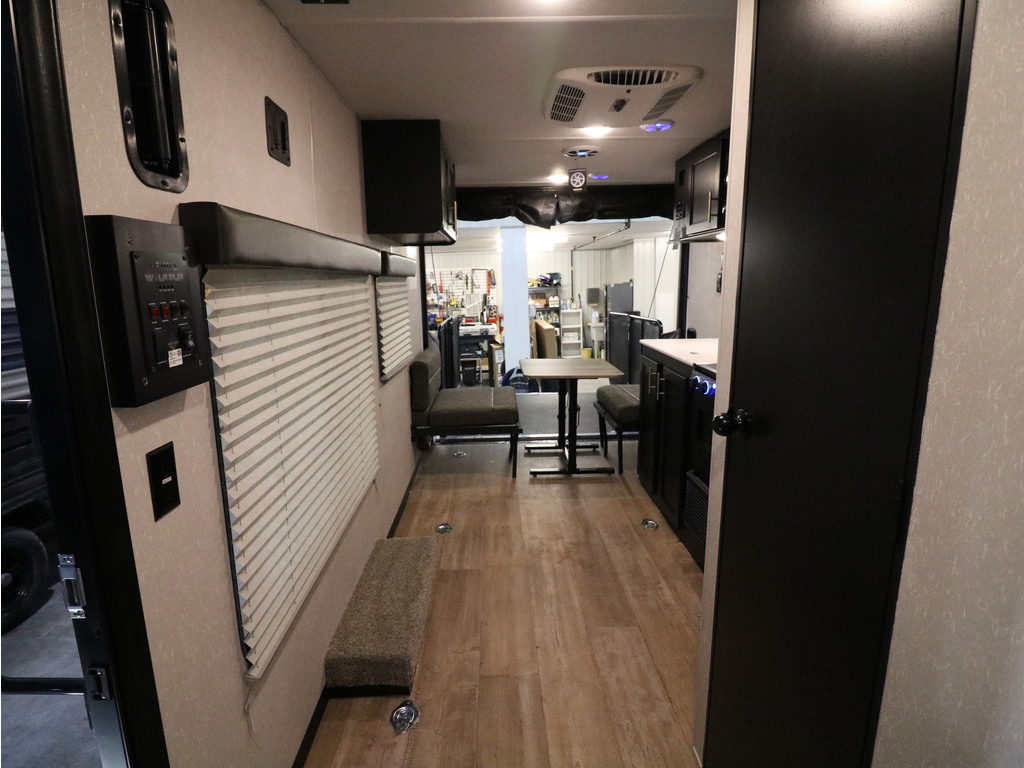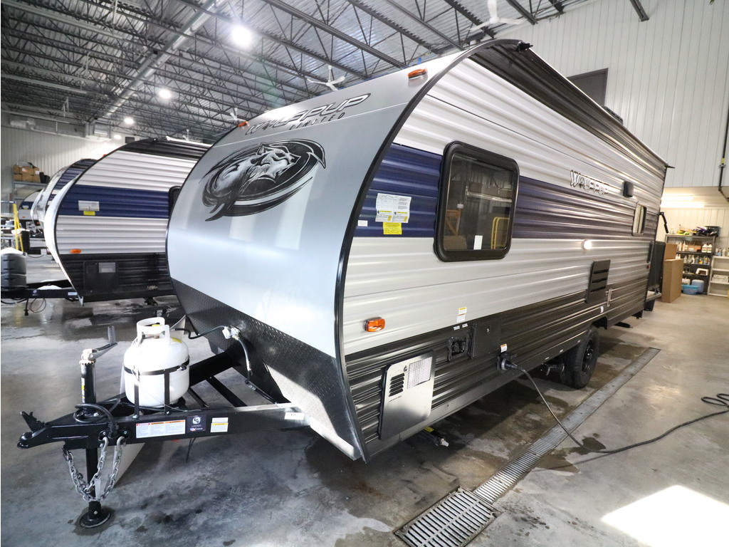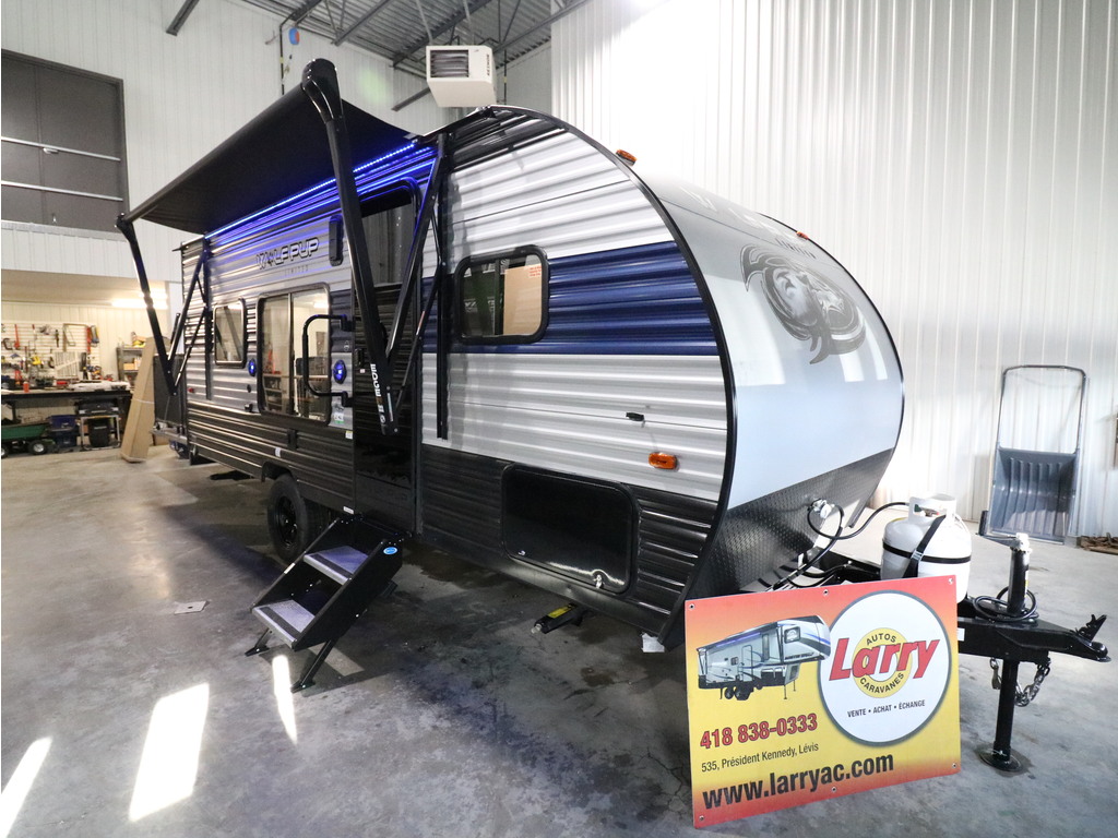 EN STOCK !!!!! Wolf Pup 18RJB 2022. Idéale pour transporter facilement votre moto, votre VTT etc. Elle pèse 3450 lbs. Super bien équipée avec une cuisine munie d'un évier, grand réfrigérateur et cuisinière. La table se transforme en lit supplémentaire, ce qui permet d'accueillir environ 3 personnes à coucher dans la roulotte. La salle de bain possède un bain douche. La chambre est situé à l'avant de la roulotte avec un lit queen ainsi qu'un petit lit superposé. La rampe d'accès arrière se transforme en patio. Porte arrière pleine grandeur. Absolument à voir. Financement facile sur place.