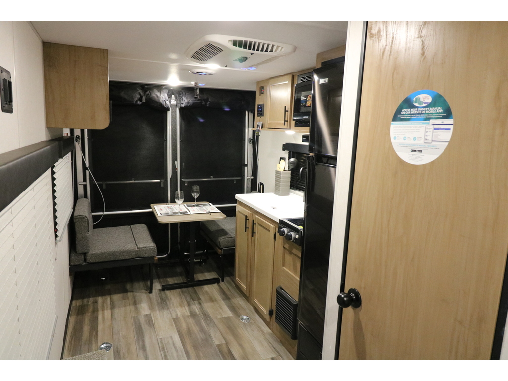 VENDU !! Wolf Pup 18RJB 2023. Idéale pour transporter facilement votre moto, votre VTT etc. Elle pèse 3450 lbs. Super bien équipée avec une cuisine munie d'un évier, grand réfrigérateur et cuisinière. La table se transforme en lit supplémentaire, ce qui permet d'accueillir environ 3 personnes à coucher dans la roulotte. La salle de bain possède un bain douche. La chambre est situé à l'avant de la roulotte avec un lit queen ainsi qu'un petit lit superposé. La rampe d'accès arrière se transforme en patio. Porte arrière pleine grandeur. Absolument à voir. Financement facile sur place. LARRY CARAVANES 530 ROUTE DU PRÉSIDENT-KENNEDY LÉVIS SORTIE 325 SUD 418-838-0333