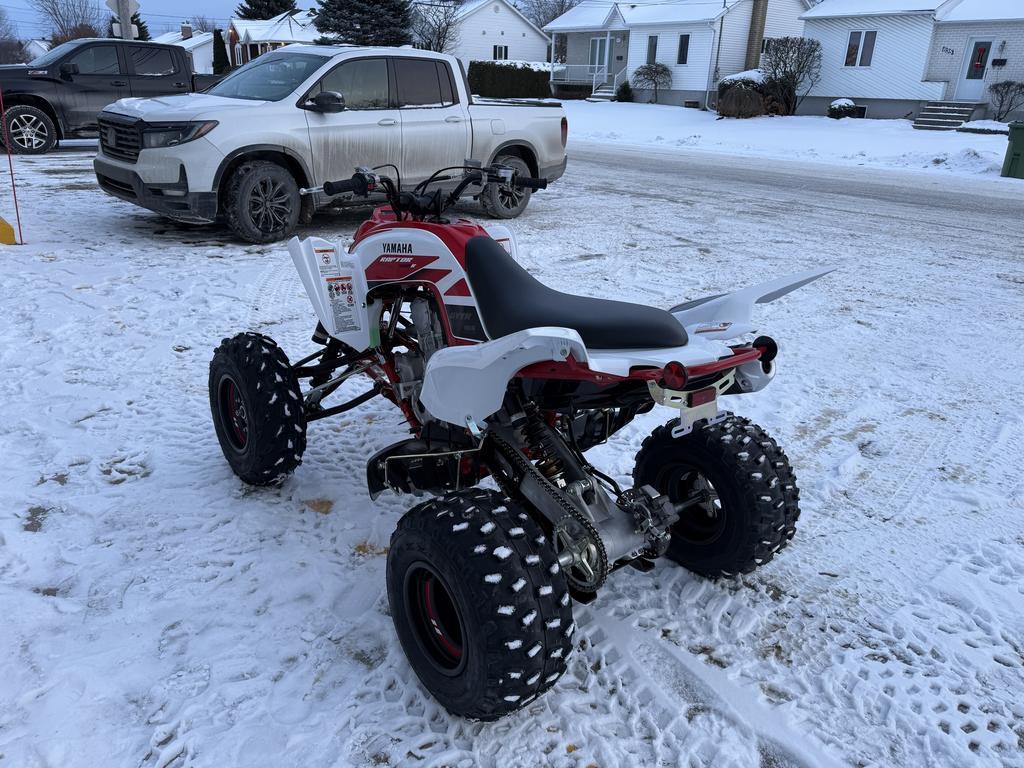 Trouvez votre Yamaha Raptor 700R SE 2026 chez Moto Sport 100 Limites à Drummondville Vous cherchez un VTT Yamaha Raptor 700R SE 2026 performant, agile et conçu pour les amateurs de sensations fortes ? Découvrez ce modèle exceptionnel dès maintenant chez Moto Sport 100 Limites à Drummondville, votre concessionnaire de confiance pour VTT, motos, UTV et motoneiges dans la région du Centre-du-Québec. Caractéristiques principales du Yamaha Raptor 700R SE 2026 - Moteur puissant : Monocylindre 686 cm³ à injection électronique pour des performances maximales sur tous les terrains. - Transmission manuelle : 5 vitesses avec marche arrière pour une conduite précise et contrôlée. - Suspension avant et arrière : Débattement long pour un confort optimal sur sentiers et terrains accidentés. - Châssis robuste : Cadre hybride en acier et aluminium pour légèreté et durabilité. - Équipements spéciaux : Accessoires GYTR® et édition spéciale 70e anniversaire pour un style unique et protection améliorée. Pourquoi choisir Moto Sport 100 Limites à Drummondville ? - Large inventaire de VTT Yamaha et autres marques populaires. - Service après-vente et entretien complet sur place. - Conseils personnalisés pour choisir le VTT adapté à vos besoins. - Localisé au Centre-du-Québec, à proximité de Victoriaville, Trois-Rivières et Sherbrooke. Découvrez le Yamaha Raptor 700R SE 2026 dès maintenant chez Moto Sport 100 Limites à Drummondville. Localisé au Centre-du-Québec, à proximité de Victoriaville, Trois-Rivières et Sherbrooke. Appelez-nous au (819) 445-6686 !