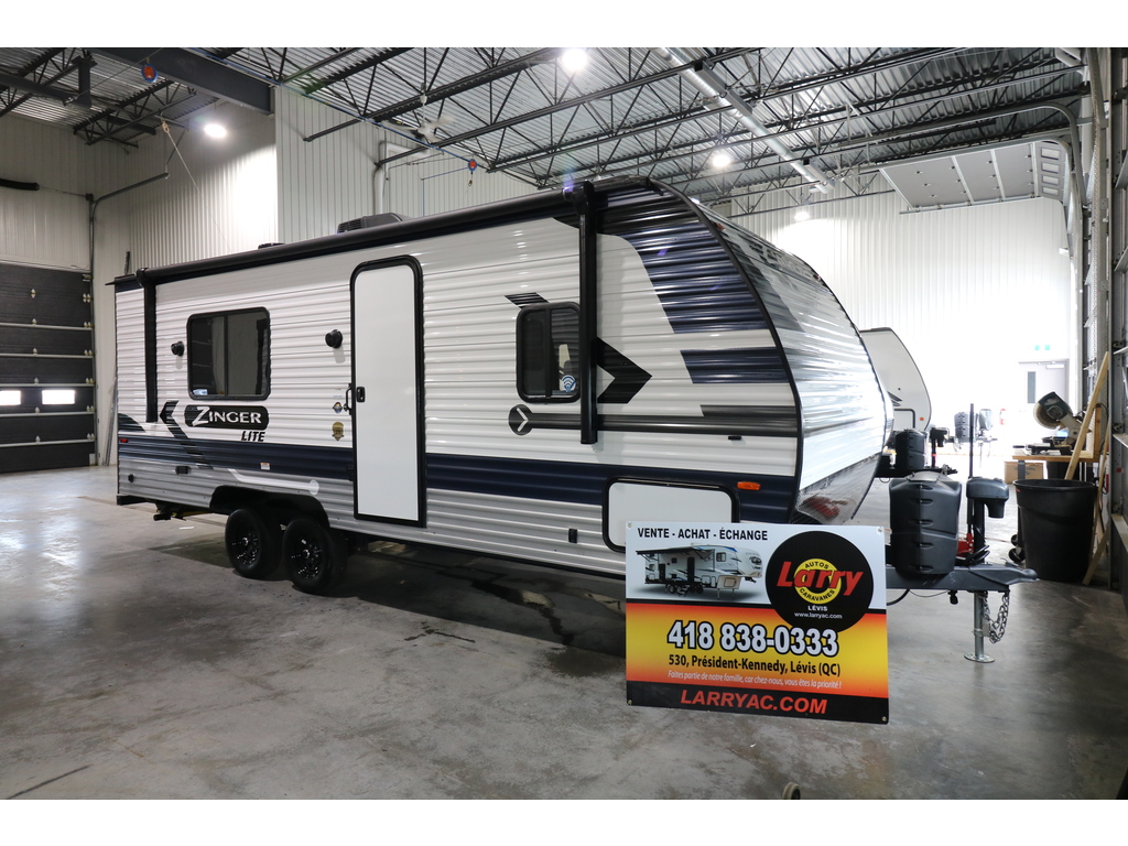 BELLE PROMOTION !!!!! VENEZ LA VOIR !!!! RABAIS 5000$ !! Zinger 219RD 2022. Roulotte parfaite pour un couple!. Elle possède une cuisine complète avec four, micro-ondes et grand réfrigérateur. Vous avez une banquette qui se transforme en lit ainsi qu'un sofa qui se transforment tous les deux en lits supplémentaires pour les invités. À l'avant, vous avez un grand lit avez rangement de chaque côté de celui-ci. Dans la salle de bain, il y a une pharmacie, vanité ainsi qu'une douche. La roulotte possède un système de haut-parleur pour la radio et fonctionne Bluetooth. Vous serez enchanté par le système de vérin avant électrique ainsi que le système des vérins stabilisateurs. Dehors, vous pourrez profiter du bon temps à l'extérieur grâce à l'auvent électrique ainsi que les coffres de rangement qui seront très pratiques! Financement disponible sur place. PRIX RÉGULIER: 40 995$...............................PRIX SPÉCIAL: 35 995$ = RABAIS 5000$!!!!!!! À VOUS POUR SEULEMENT: 81$/SEMAINE!! 0$ COMPTANT!! sur approbation du crédit seulement. LARRY AUTOS CARAVANES 530 ROUTE DU PRÉSIDENT-KENNEDY LÉVIS SORTIE 325 SUD 418-838-0333 ***Phots à titre indicatif***